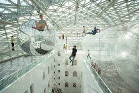 Jaring yang saling menghubungkan karya Saraceno ini saja beratnya mencapai tiga ton dan ada setengah lusin balon PVC diantaranya.