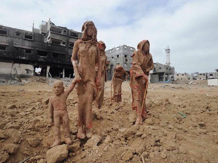 Seniman Gaza Buat Bikin Patung di Tengah Reruntuhan