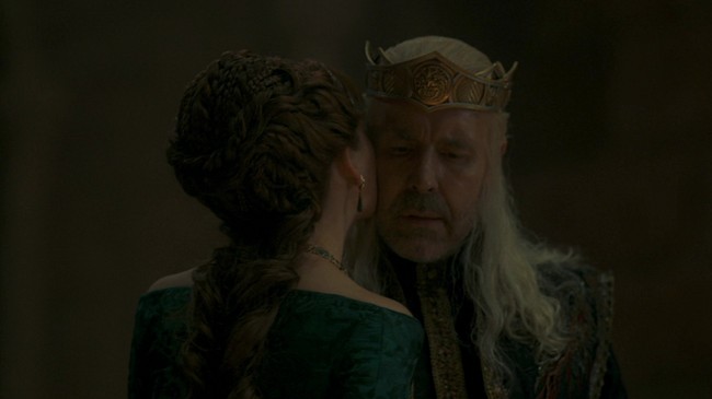 Pada episode terbarunya, Alicent digambarkan menjadi istri muda dari King Viserys. Keduanya pun beradegan intim di mana Emily terlihat tengah terbaring di ranjang bersama suami barunya itu.